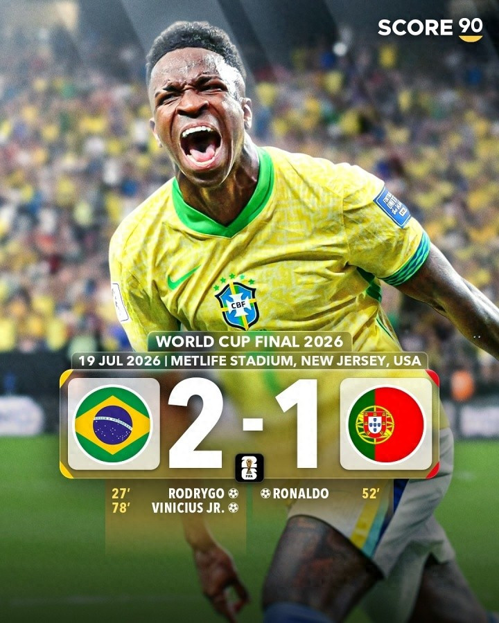 巴西2-1葡萄牙,罗德里戈先拔头筹,C罗下半场扳平比分,维尼修斯制胜。